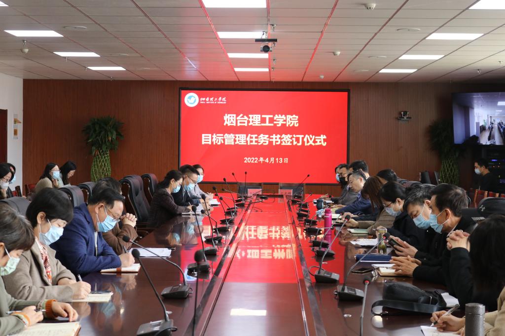 4月13日,学校在综合楼六楼视频会议室隆重召开2022年二级单位目标管理任务书签订仪式。校长于光辉出席会议并讲话,副校长苏春景主持会议,校领导班子成员、各学院院长、职能部门与教辅单位负责人、中层干部参加会议。