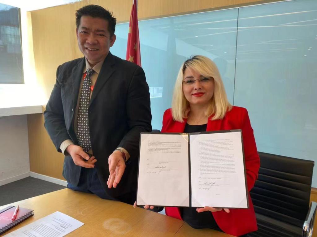 夏毅副校长与Sara女士分别代表两校签署合作协议。