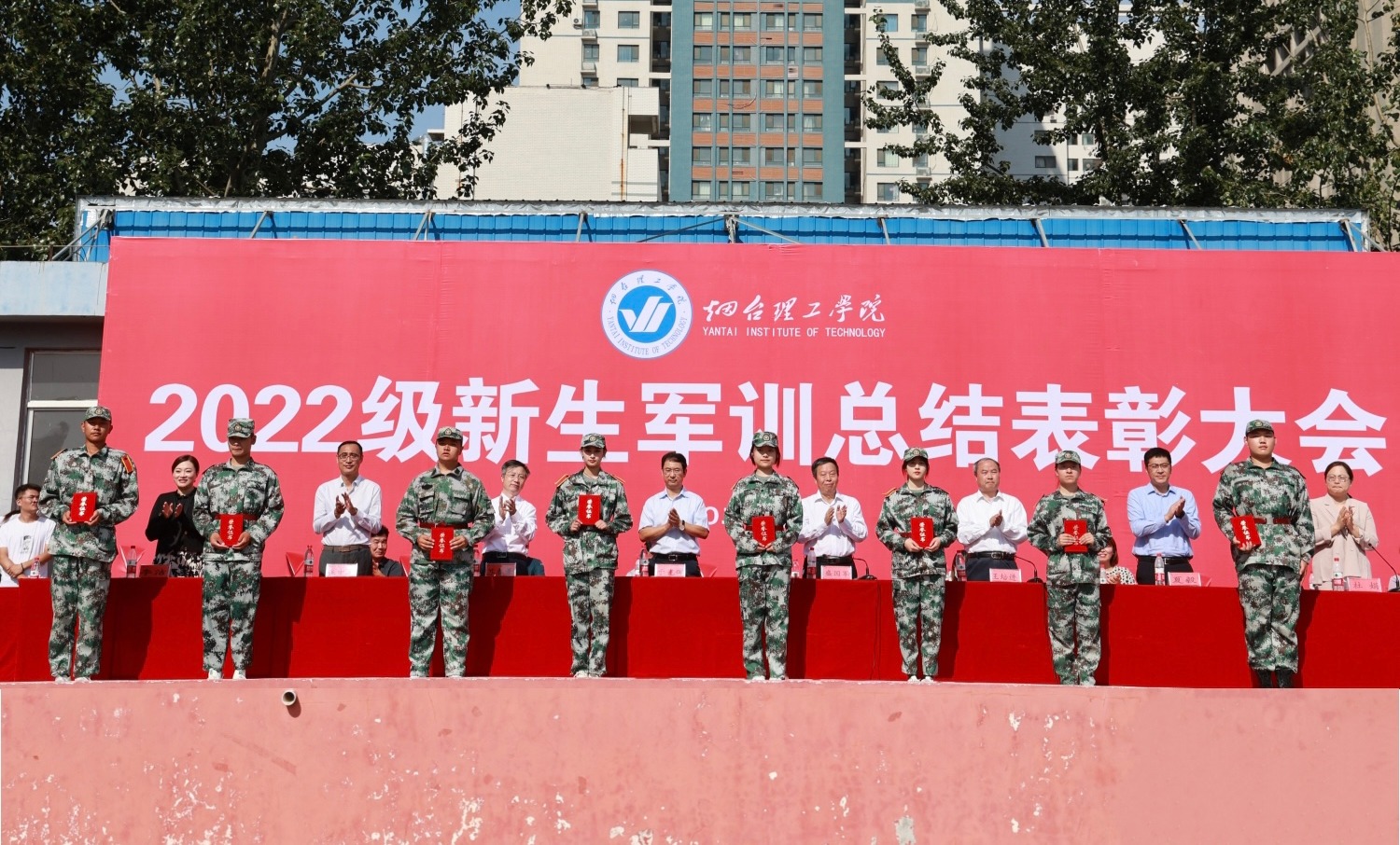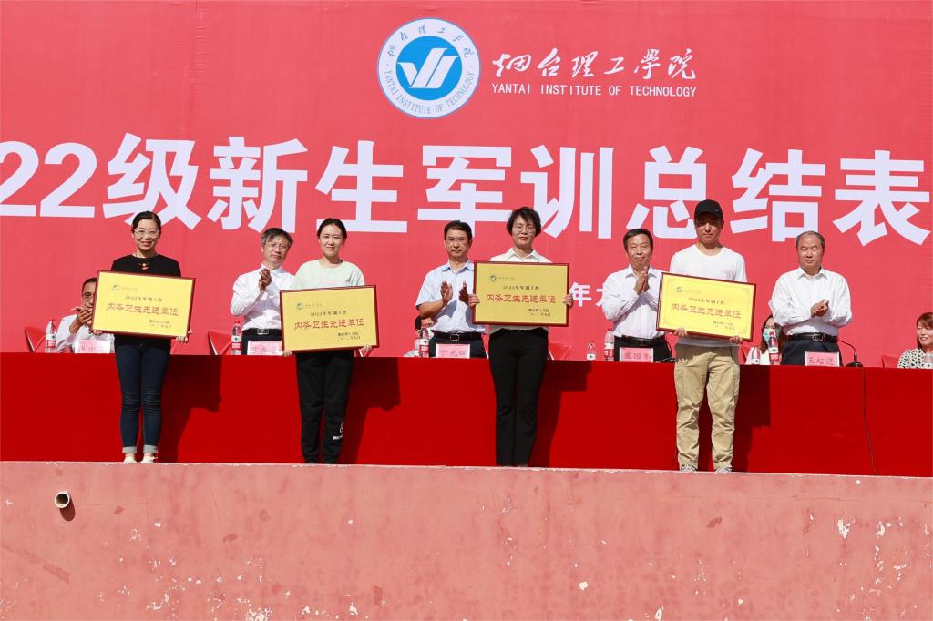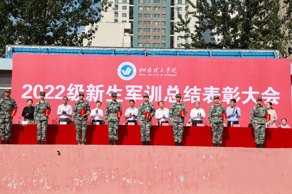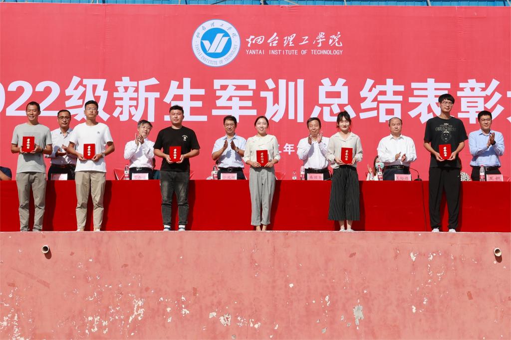会上,副校长王培进宣读了《烟台理工学院关于表彰2022级新生军训先进集体及个人的决定》,主席台就坐领导为先进集体和个人代表颁奖。