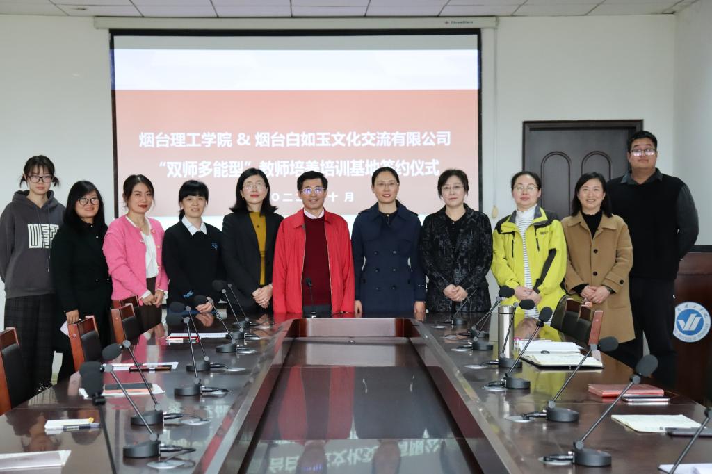 10月26日,我校外国语学院与烟台白如玉文化交流有限公司举行“双师多能型”教师培养培训基地签约仪式,院长刘白玉、常务副院长于巧丽、党总支副书记赵蓓、烟台白如玉文化交流有限公司副总经理孙明玉女士、院长助理张丽、专业负责人殷莉及各专业系主任参加了此次签约仪式,签约仪式由张丽主持。