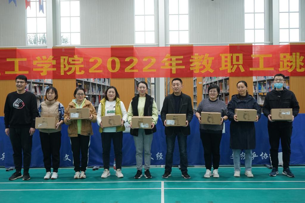 经过一个多小时的激烈角逐,决出了本次比赛的前六名,分别为人工智能学院队、学工团委队,图书馆队、教工一队、机电工程学院队、食品与生物工程学院队,其中人工智能学院队以85跳的佳绩获得一等奖。在热烈的气氛下,校领导们为获奖队伍依次颁奖。