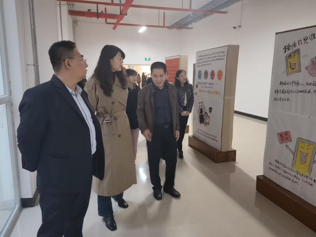 为进一步提高同学们的安全意识,提醒同学们以诚为本,以信立人,谨防诈骗,保护自身利益,11月23-28日,由校团委、保卫处主办,信息工程学院承办的“青春不欺,校园无诈”防诈骗主题作品展于综合楼一楼大厅举行。校团委书记申海滨、保卫处处长高培力、信息工程学院党总支副书记王明印、团总支书记祝箐、全体辅导员及学生代表一同观看作品展。