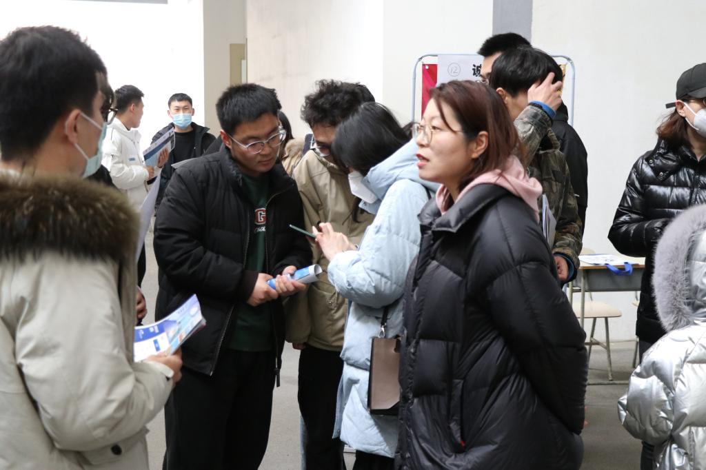 招聘会现场人头攒动,气氛热烈,毕业生参与热情高涨,积极就工作内容、岗位职责、发展前景、薪资待遇等与用人单位交流洽谈。毕业生普遍反映参会单位及招聘岗位质量较高,每家用人单位前都有多名毕业生排队咨询。