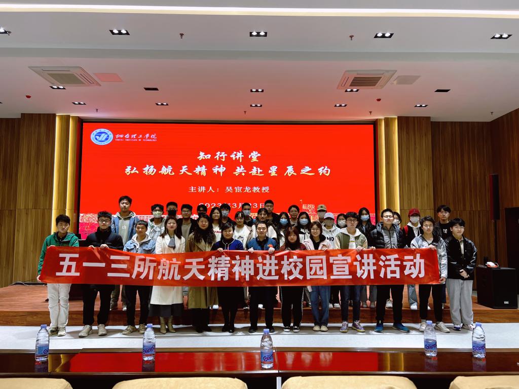 为弘扬航天精神,深入理解航天精神内涵,积极为同学们营造崇尚科学、推动创新、建设科技强国的良好氛围。3月23日晚由校团委主办的知行讲堂邀请到航天科技集团五一三所航天精神宣讲师吴宦龙在综合楼六楼报告厅做“弘扬航天精神,共赴星辰之约”主题讲座。航天科技集团五一三所团委书记艾青、烟台理工学院团委书记申海滨出席本次活动,各二级学院的同学们前来聆听。