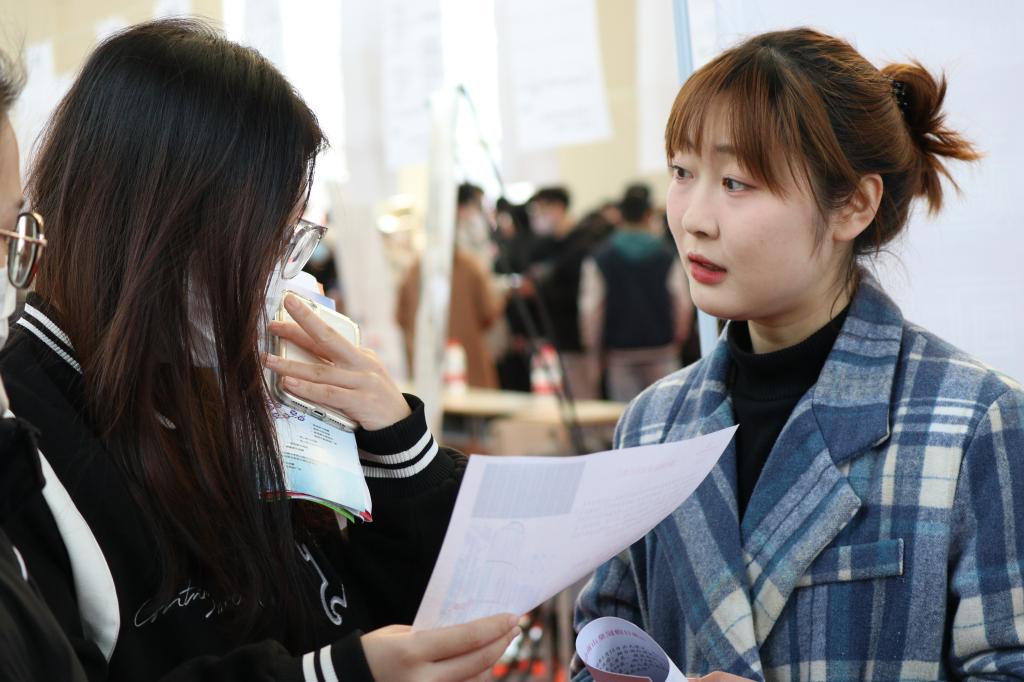 2023届毕业生踊跃参加,现场热闹非凡。参加招聘会的信息工程学院毕业生李雨航表示,“我想从事本专业计算机相关前端开发工作,学校为我们提供的资源很多,专业相关的岗位挺多的,双方交流起来很方便。”机电工程学院的毕业生邢芝琦表示,“我认为我的专业技能是比较强的,对于找到对口又对心的工作我非常有信心。”此前根据学校发的企业名单他早早做了“攻略”,找到了自己心仪的几家单位,投递简历之外还详细了解了用人单位的需求,进行了积极的沟通。