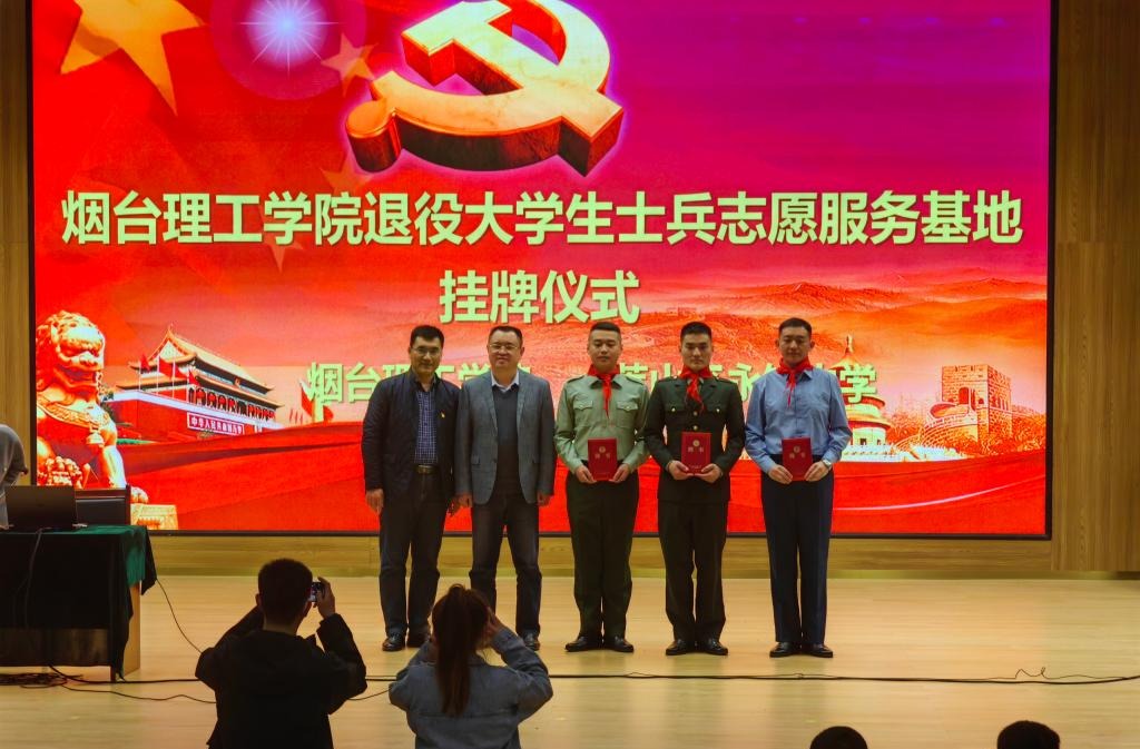 演讲结束后,由姜政伟校长给王沛凯、于海琳和范翔宇颁发“校外思想政治辅导员”聘书并由少先队员为3名主讲人佩戴红领巾。机电工程学院党总支书记邓之增和烟台永铭中学姜政伟校长为“烟台理工学院退役大学生士兵志愿服务基地”共同揭牌,本次活动圆满结束。