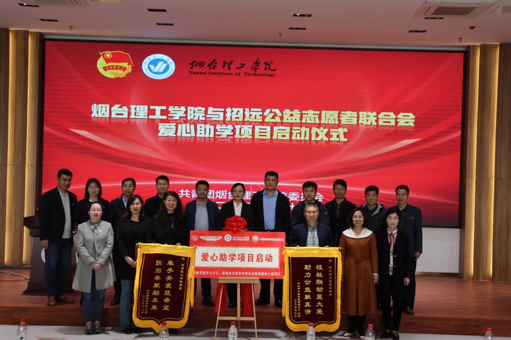 启动仪式上,校长助理杜娟与招远公益志愿者联合会会长冯晓伟共同为爱心助学项目揭牌,共青团招远市委及招远市公益志愿者联合会为烟台理工学院赠送锦旗。