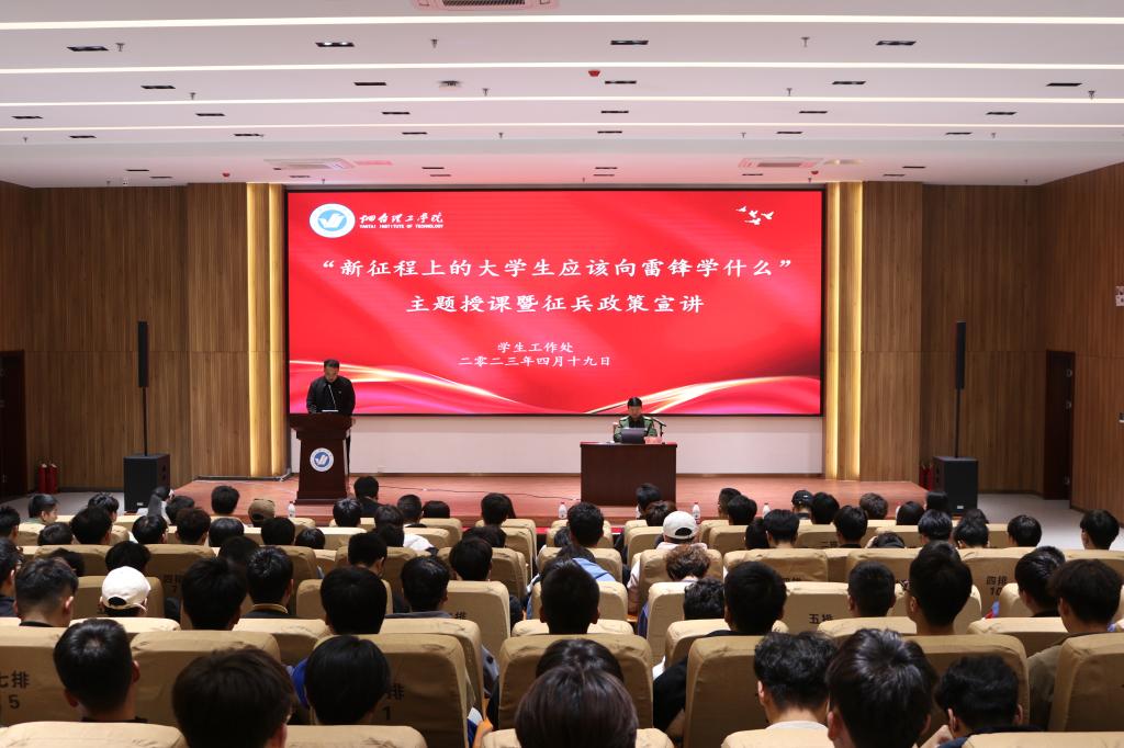 本次“新征程上的大学生应向雷锋学什么主题授课暨征兵政策宣讲会”,帮助有意参军的同学们了解征兵政策及相关流程,激发学生积极参军、报效祖国的热情,让广大青年明白征兵固防,安国兴邦是每个公民的神圣职责,也为我校征兵工作的顺利开展打下了良好基础。