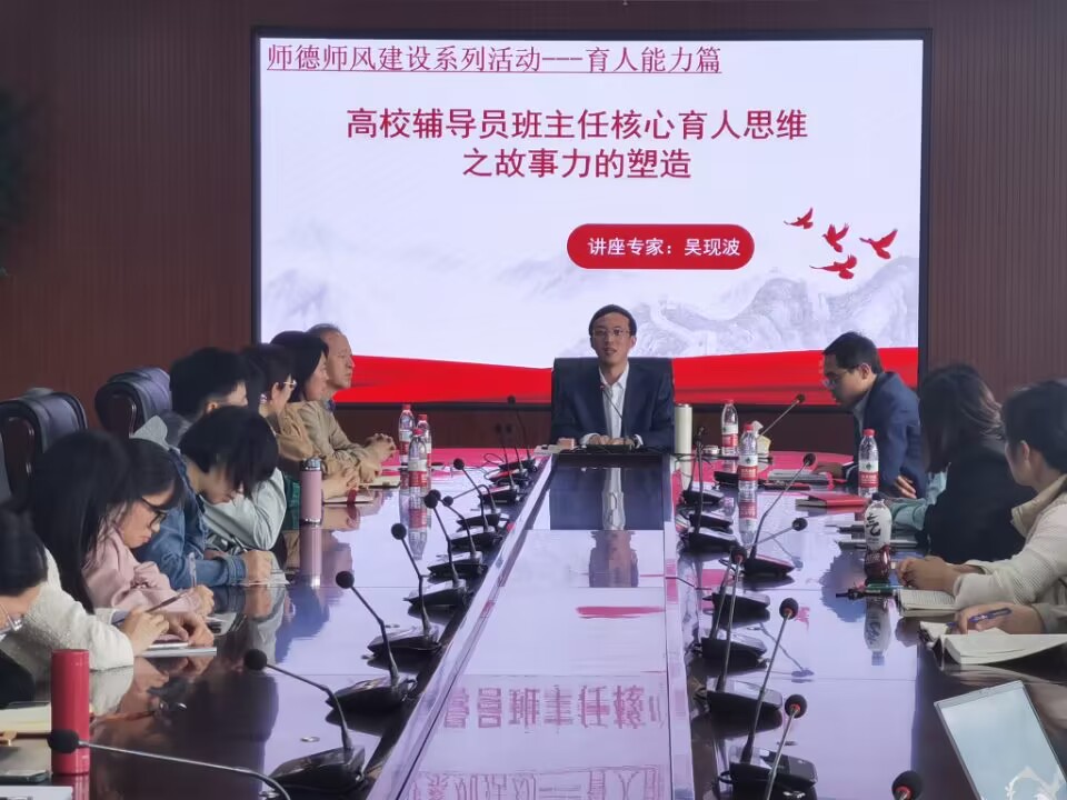 为全面推进师德师风建设,提高辅导员和班主任的职业能力素养,增强教师课程思政能力,提升协同育人水平。5月10日下午,经济管理学院特邀山东工商学院吴现波老师来校作题为《高校辅导员班主任核心育人思维之故事力的塑造》专题讲座。经济管理学院领导、老师积极参加。讲座由学院党总支书记高照龙主持。