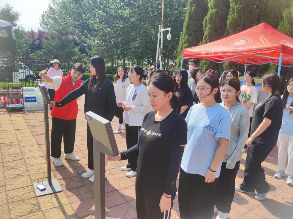 体测抽查过程中,学生们积极配合,志愿者热情服务,辅导员贴心陪同,体育教师指挥有序,后勤、保卫、医务人员提供物资、安全保障,分工明确,现场秩序井然,充分展现了我校师生良好的精神风貌和较高的体测工作专业水平。