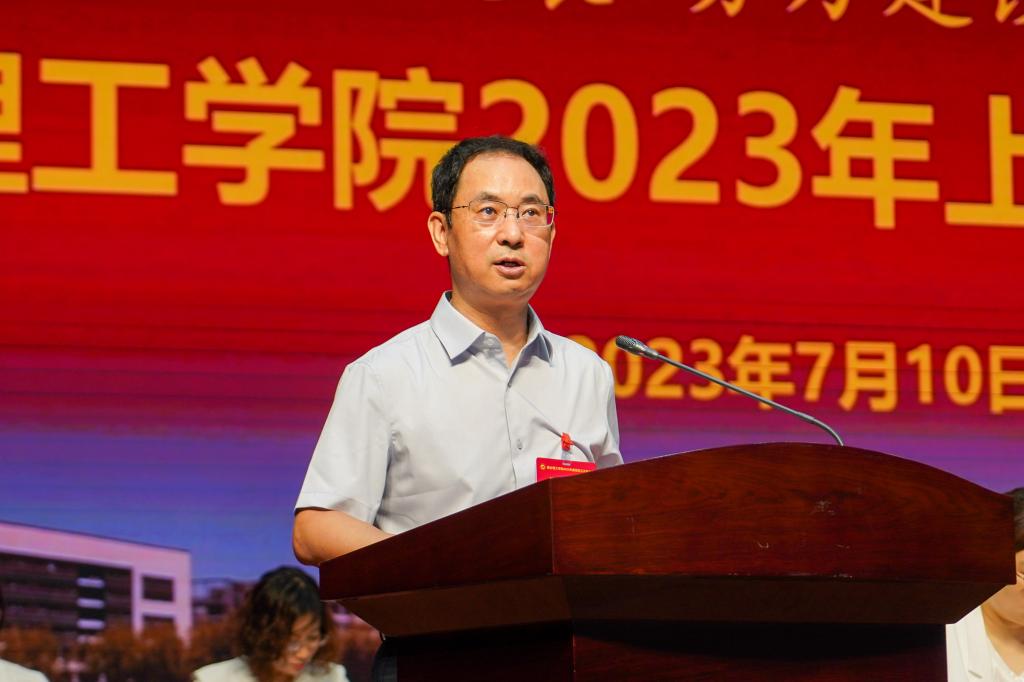 大会在雄壮的国歌声中开幕。校长于光辉作了题为《加压奋进创新发展努力建设幸福卓越烟理工》的工作报告,全面回顾了2023年上半年主要工作和取得的成绩,部署了下半年重点工作。报告指出,2023年学校认真落实全年工作要点和创新发展年工作要求,成功举办20周年校庆,党建工作进一步夯实,学科专业布局更加优化,人才队伍建设成效显著,全方位育人体系建设进一步深化,招生就业工作扎实推进,科研工作和校地融合步伐加快,办学条件不断完善。报告重点围绕深入贯彻党的二十大精神、落实“双六”办学思路、推进应用型本科高校建设、学科专业课程一体化建设、师资队伍优化配置、新校区规划建设、人才培养以及招生就业等方面,对学校下半年总体工作进行了部署安排。于光辉强调,我们要坚持创新为要,以提供“适合的教育”,促进个体充分发展,让学生更幸福,让社会更美好为使命,办“有灵魂、有温度、有责任、有特色”的新型大学,育“重品格、善沟通、能做事、会创新”的优秀人才,努力把烟台理工学院建成国内同类院校水平领先的地方性应用型大学!