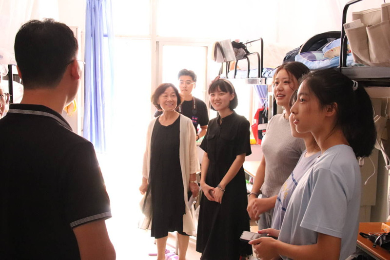 近日,中文与法律系党总支书记曹钊庆、学生工作负责人王淑霞以及19级新生班主任一起走访了新生宿舍。