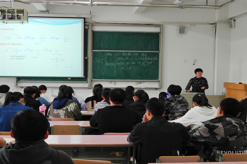 4月19日上午,初晓辉于二教511教室进行了第一堂公开观摩课,此次讲授的课程为《有机化学》。初晓辉利用简单明了的PPT文稿,采取启发式、参与式等教学方法,将理论与实践有机结合,用幽默诙谐的授课方式将晦涩难懂的知识难点进行诠释,学生听课的精神状态饱满,课堂氛围非常活跃,师生互动频繁,教学效果良好,有利于学生主动性学习思维的培养。4月22日上午,李静于一教216教室开展了第二次公开观摩课,讲授的课程为《生物化学》。李静运用新的教学理念,大胆创新教学方法,利用形近的实物,将知识转化到生活中,让学生更形象地理解课本知识,更好地进行消化吸收,课堂氛围十分活跃。观摩结束后,大家共同探讨,大胆总结,认真反思,取其精华,进一步促进教研活动的开展。