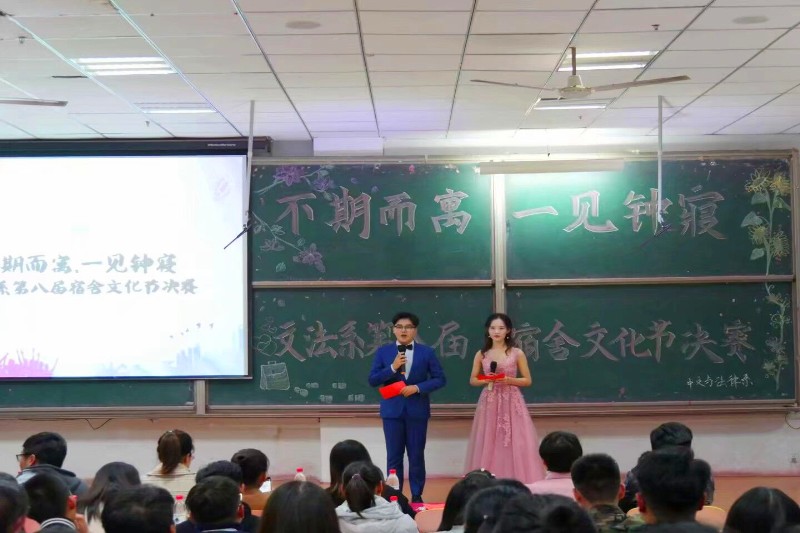 11月9日晚,文法系“不期而寓,一见钟寝”第八届宿舍文化节决赛于二教115教室举行,文法系辅导员梁丹、王美云、辛佩恕,18级各班班主任教师李泓纲、赵改霞、吕超、姜晖担任评委,学生会主席团、各部部长及18级学生到场观看。
