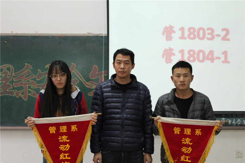 本次会议,旨在通过为卫生成绩优异班级颁发流动红旗的形式,规范同学们的日常行为,调动学生打造良好卫生环境的积极性。主持人结合幻灯片为在场人员详细讲述宿舍内务整理标准、评选标准。据此评比,管1803-2、管1804-1荣获流动红旗。为使在场同学进一步明确社区安全隐患,丛维针对当前宿舍出现的新情况新问题进行总结阐述,他强调宿舍内禁止使用大功率电器、管制刀具、易燃易爆品等违禁物品,指出开展社区卫生服务工作存在的问题与不足,要求同学切实建立监督机制,希望各班级代表充分发挥带头作用,以此次安全文明月为契机,严格遵守社区卫生安全规章制度,强化服务意识,狠抓学生作风建设,积极落实各项安全部署,强化社区卫生和安全环境建设。