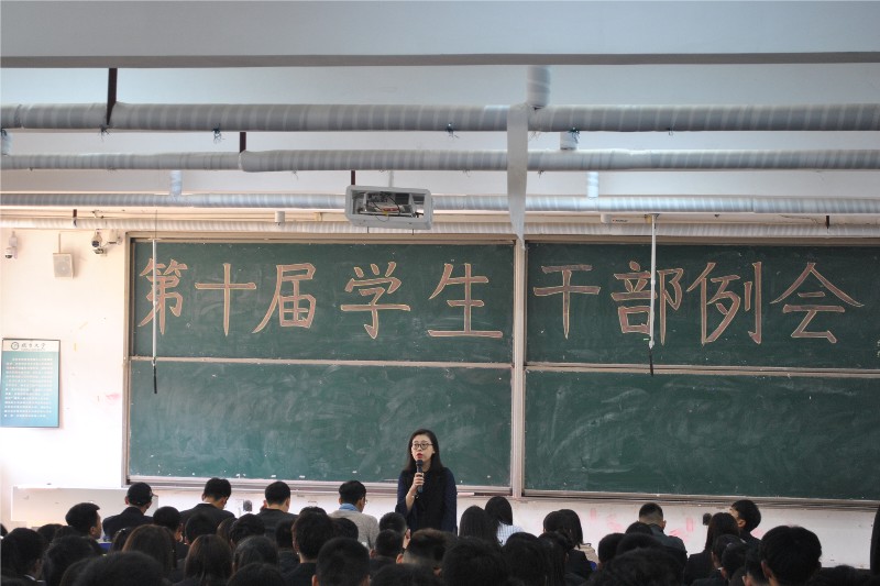 大会在党总支书记杨帆感人肺腑的发言中拉开帷幕,他向加入学生干部大家庭的新生们表示热烈欢迎。随后,第九届主席傅炳辉宣读新成立部门文件及学生干部任命文件;第十届学生会主席高尉凯宣读了学生干部纳新名单,新任部委全神贯注,皆做好了为学生做贡献的准备;纪律监察委员会主席赵玉倩宣告团中央倡议书,倡议书以殷切的叮嘱,嘱托干部们恪守本分,服务同学,坚定理想信念,脚踏实地,平等待人;团总支副书记谷海源宣读新华社对学生干部官僚化的点评,其中“学生干部要立志做大事,而不是立志做大官”一句箴言深入人心。会议最后,团总支书记陈鹏程做出会议总结,他强调严禁学生干部群体滋生功利化、庸俗化的歪风邪气,广大生干部要充分明确自身职责,自觉遵守学生会的各项规定,切实做到全心全意服务学生。