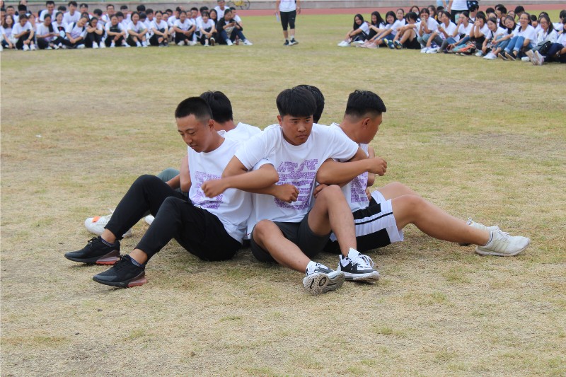 此次运动会以“激扬青春,娱乐身心”为主题,共分为坐地起身、背传字、心心相印三个游戏环节。活动伊始,同学们便以高度的热情投入到游戏之中,每个班级也都为各自的代表队伍呐喊助威。在紧张刺激的坐地起身和背传字两项游戏结束后,新生们为大家带来了精彩绝伦的歌曲、舞蹈、武术等才艺表演。引人遐想的《南山南》、婀娜多姿的舞蹈,展现出管理学子朝气蓬勃的青春风采,大家强强联手又直面对抗,可谓是精彩纷呈,现场气氛一度达到高潮。短暂的中场休息后是最佳考验团队配合的心心相印,在此环节中,新生班助们也亲身参与其中,大家的欢呼鼓舞声此起彼伏,经过几轮激烈的比拼,管1813-1班最终拔得头筹。活动最后,李昆峰老师和班助们合唱了一曲《如果有来生》,用歌声向新生送去最真挚的祝福。