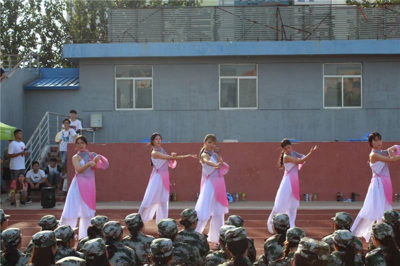 演出以文艺部曹萌、郭秋丽联合献上的说唱《失夜1999》火热开场,动感十足、活力无限,为刻苦训练中的新生带来身体上的放松和精神上的慰藉。随后文艺部女生身着古风演出服,带来了中国风舞蹈《落花情》,古典音乐与柔美舞姿巧妙融合,展现了浓郁的民族风情。诠释了管理系班助全心全意为新生无私服务的奉献精神。紧接着一段舞蹈串烧将现场推到了高潮,动作节奏充满韵律和朝气,在热舞中展现青春风采,博得了阵阵掌声。最后文艺部李永盛、张少勋带来的经典歌曲《海阔天空》激励着新生不忘初心,砥砺前行。