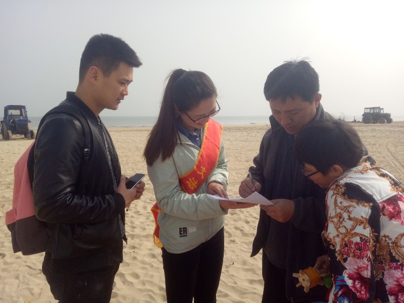 本次活动分为两个部分。首先,志愿者们沿着海岸线向市民、游客发放环保倡议单,进行海洋环保宣传,倡导游人做海洋环保、生态文明的忠实践行者。其次,志愿者们分批次进行了拾捡垃圾的工作,并与环卫人员一同学习了海灾预防的一系列专业知识。