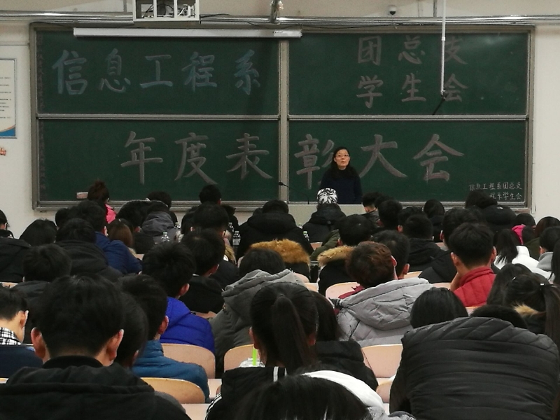 为表彰先进,树立典型,12月17日,信息工程系学生会、团总支年度表彰大会在二教303召开,信息工程系团总支书记祝箐、学生会主席团以及团总支学生会各部部长共同观看。