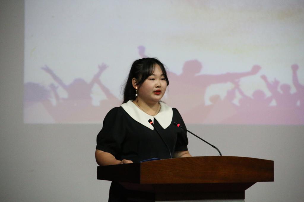 中文与法律系党总支书记曹钊庆致辞指出,同学们应当志存高远,胸怀家国,求真务实,学习创新,不负韶华,只争朝夕。教师代表郑新飞表达了对新生的期许,希望新生们能够带着敬畏之心对待时间、对待专业,不让大学生活留下遗憾。老生代表成晓悦以“坚守”二字为题,呼吁同学们在接下来的大学生活中坚守青春使命、坚守学习劲头、坚守良好习惯。新生代表董睿智表达了对大学生活的向往,以及对未来的规划和展望,彰显了新时代青年的信念与担当。