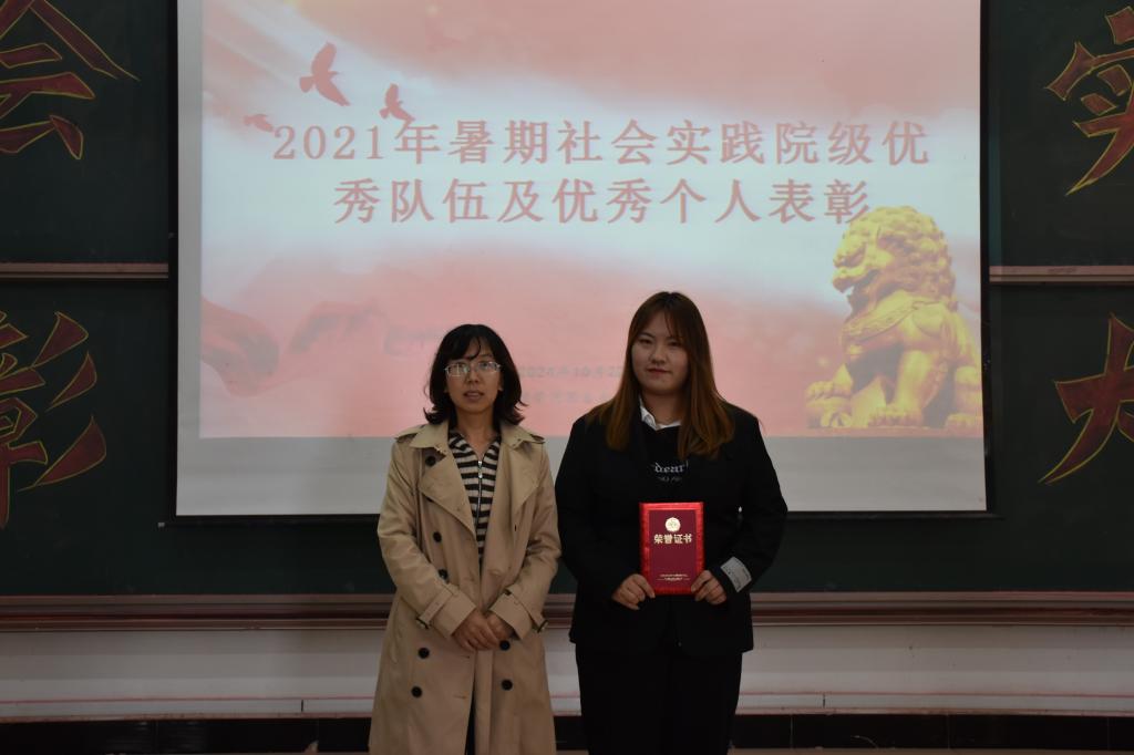 本次表彰大会分为实践队伍经验分享、团队和个人表彰两个环节。四支优秀队伍从社会实践的前期准备、实践过程、突发准备、后期宣传等方面进行讲解,为同学们后续的社会实践提供了良好的学习与借鉴作用。其中,校团委瞳芽志愿服务队就关注脑瘫儿童上学、心理帮助的课题选择和实践过程进行详细介绍,团队通过联系相关机构争取到资金援助,建立希望小学等方式贡献出自己的力量,呼吁社会各界将爱心传递。经管学院言传队通过前往参观拜访沂蒙萃农业科技有限公司、蒙阴双创视频直播基地等实践地,了解当前直播带货形势,探究电商所处的背景及人们网上购物对直播带货的影响。在暑期优秀实践团队和个人表彰环节结束后,由韩老师进行总结发言,对各实践团队所取得的优秀成绩表示肯定,给予同学们新的目标和期待,并希望大家不断地在实践中开拓眼界、磨炼意志,通过积累相关经验增强适应社会的能力,成就更好的自己。
