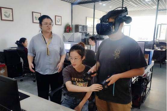 翼动智能负责人带领教师团队参观了公司的多媒体交互展示研发部及影视传媒研发部,详细介绍了近年来的发展情况及公司主营业务,包括:学科基础平台建设、慕课等课程资源建设、虚拟仿真特色专业建设、多媒体智能化场地建设、平面及3D设计服务等,并邀请教师进行现场体验,以及对人才引进及需求也进行了详细介绍。