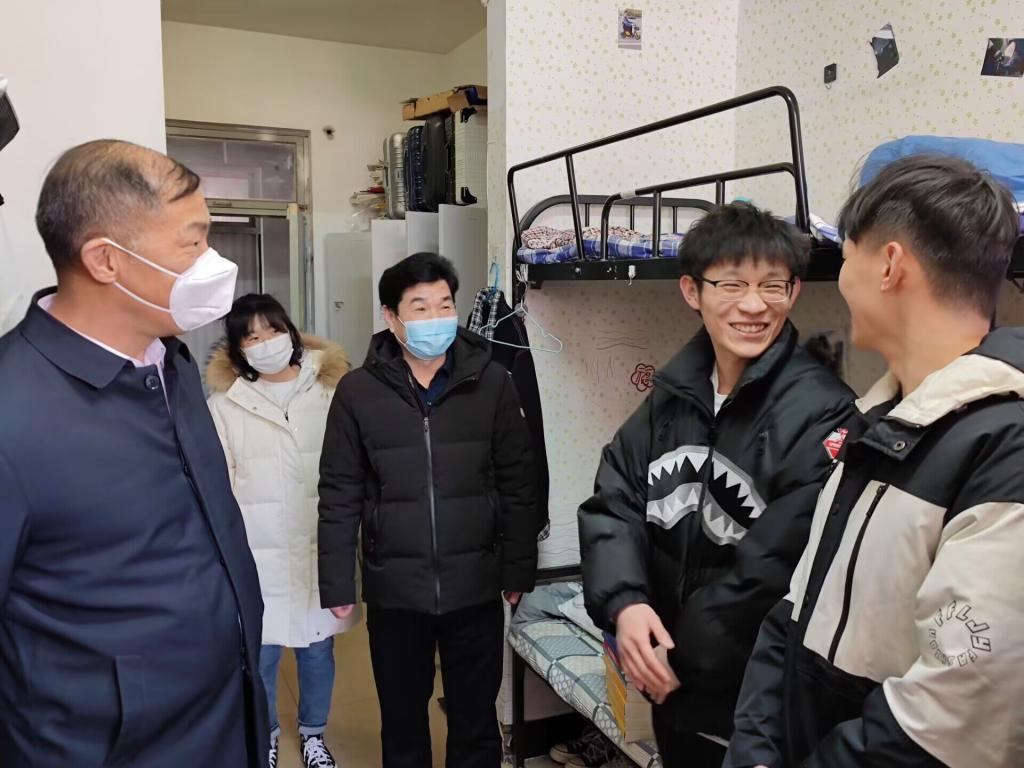 院领导走访宿舍新学期第一天,为同学们送上美好的新学期祝福,了解假期情况,并为学生们发放牛奶、水果等爱心礼包,让学生感受到学院的温暖。