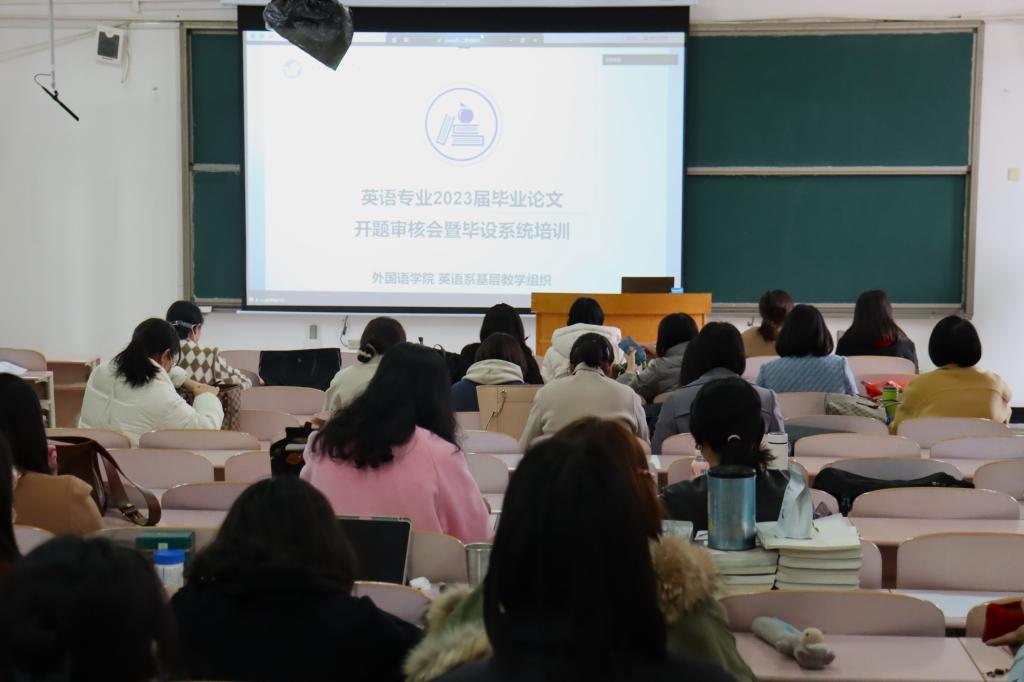 为了保证2023届英语专业毕业生的开题报告顺利完成,也为了对各位师生进行全新毕业论文系统的培训,3月16日,外国语学院英语基层教学组织于二教604举办了2023届英语专业毕业论文开题审核会暨毕业论文系统培训。本次会议由英语系副主任徐家南主持,20级毕业生和毕业班班主任及导师均列席本次会议。
