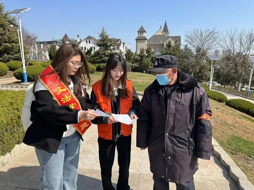 同学们于凤凰山脚下准时集合,分组行动,针对消防知识以及当地情况,发放森林防火宣传单,向群众宣传护林防火知识,提倡“文明踏青”,劝导人们不要随身携带打火机、香烟等可燃物品进入森林。同学们深入各个角落进行火险隐患排查,分赴各个防火重点卡口,在人流穿梭的路口搭建宣传点。大家沿着凤凰山,一路开展了清理纸屑、烟头、垃圾等可燃物的行动。从道路两侧到深入,弯腰、捡拾、装袋、检查,他们热情洋溢,不停穿梭的身影成为凤凰山亮丽风景线。
