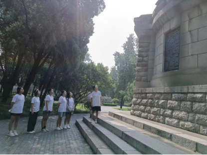 为弘扬革命精神,缅怀革命先烈,队员赵若希同学在陵园内进行了红色宣讲,真挚赞颂了当年先辈们激昂热血的抗战精神和高尚不屈的民族气节。