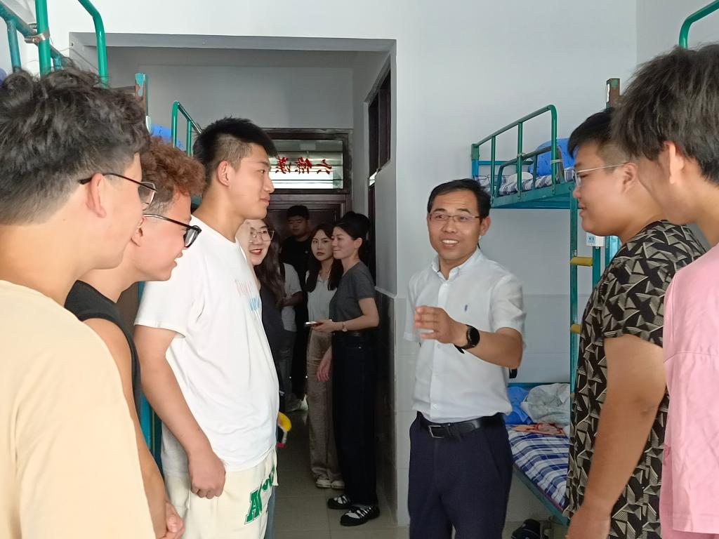 走访过程中,老师们亲切的与同学们交流,询问新生们住宿、饮食、生活等来校的适应性情况,并就如何尽快适应大学生活进行了指导。此外,也对新生们的众多疑问进行了耐心解答。高书记也断强调同学们一定要注意饮食、财产、宿舍用电安全等问题,叮嘱同学们要尽快适应新环境,新生活,整理好内务,做好学业规划,树立远大理想,珍惜时光,不负青春年华。同学们之间要相互关心,互帮互助,积极配合各项工作,以便顺利开启大学生活。