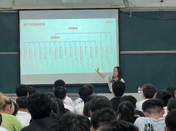 本次宣讲会首先由人力资源负责人逄雪君对杰瑞集团进行介绍,杰瑞集团是一家创新驱动的多元化产业集团,致力于提供更加安全、环保、高效的产品和服务。逄雪君也表示杰瑞集团始终秉持着永远向前、永不放弃、一切皆有可能的企业发展理念,发扬以客户为中心,以奋斗者为本的企业文化,助力全球能源的开发与利用。