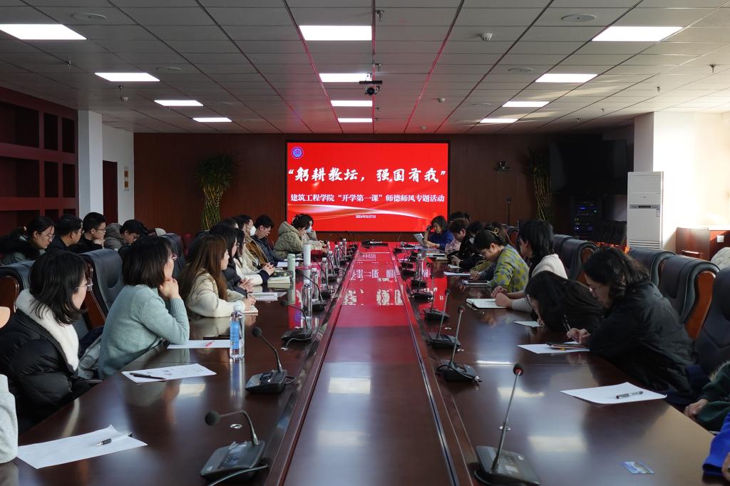 为进一步加强建筑工程学院师德师风建设,全面提高教师职业道德水平,锻造高素质教师队伍。建筑工程学院于3月7日下午于综合楼六楼视频会议室召开建筑工程学院“开学第一课”师德师风专题活动。院长辛翠香,副院长田娜,党总支副书记陈秀慧及全体教职工参加本次会议。