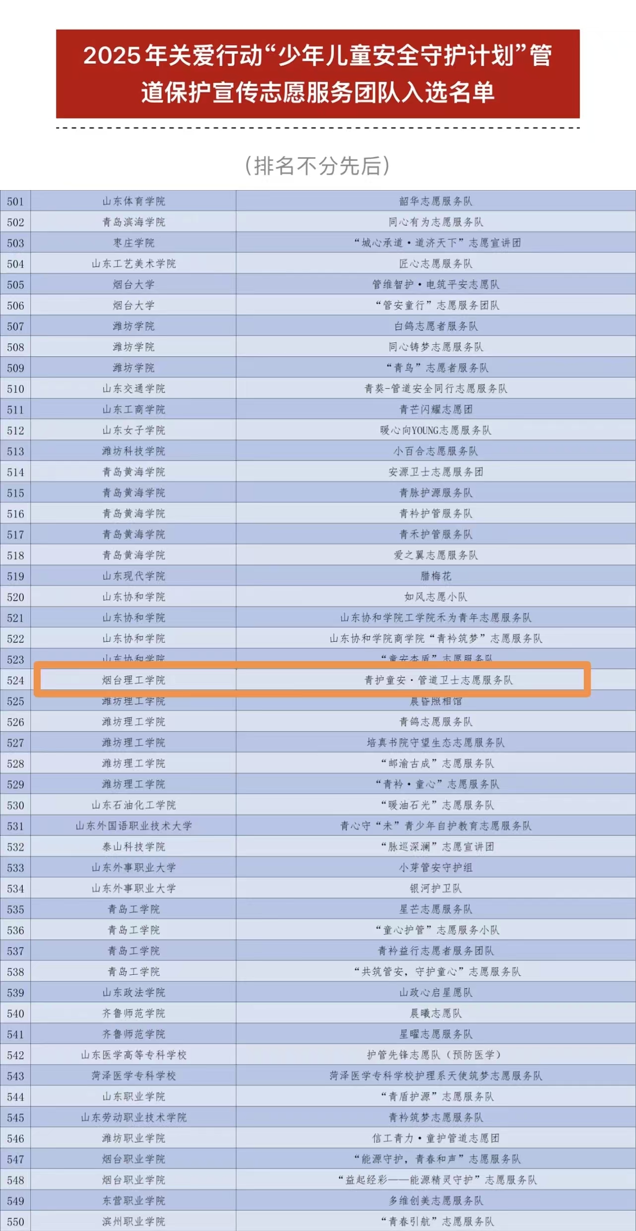 食品与生物工程学院志愿服务队入选2025年关爱行动“少年儿童安全守护计划”管道保护宣传志愿服务团