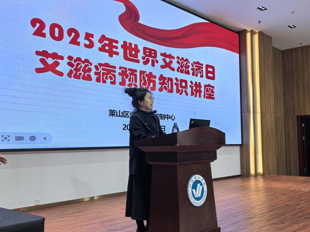为深入贯彻教育部、国家卫生健康委关于加强新时代高校预防艾滋病教育工作的部署要求,落实“健康中国”战略对青年学生健康素养的培育目标。12月1日,恰逢第38个“世界艾滋病日”机电工程学院联合校卫生服务站,特邀莱山区疾病预防控制中心艾滋病防制科科长孙贺在综合楼6楼报告厅开展“守护自我 齐心防艾”主题专题讲座,参加会议的有校卫生服务站副院长张婷婷,护士长陈娜以及2025级部分学生。